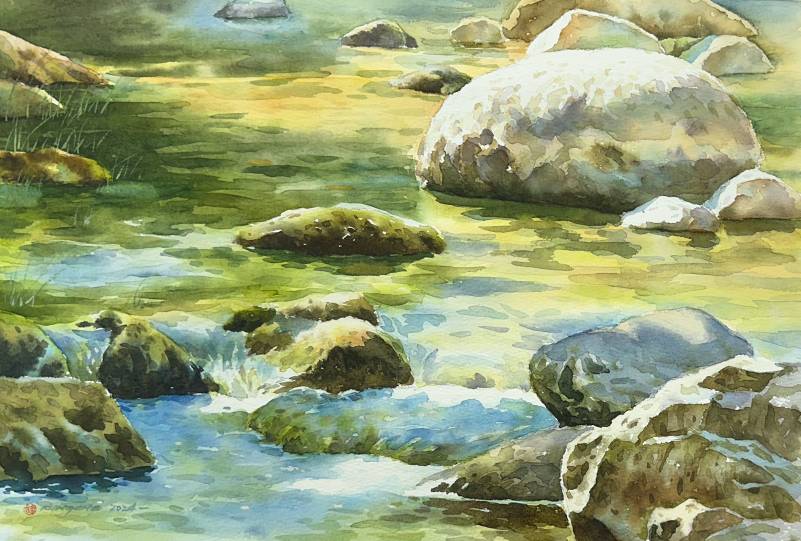 | 第十三週 | 13 | 示範教學-主題4:小橋流水(二) | 老師講解示範遠景、倒影的上色技巧,從渲染逐步增加層次,學員練習與實作上色。目標-學員實作上色。 |