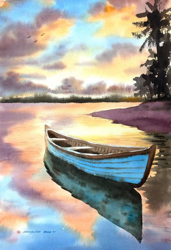 | 第十六週 | 16 | 示範教學-主題5:擺渡人(二) | 老師講解示範擺渡人與貢多拉船上色技巧,從渲染逐步增加層次,學員練習與實作上色。目標-學員實作上色。 |