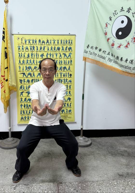 | 金雞孵蛋1-3式 | 1.虎踞沉坐:活動下肢、軀幹;髖關節、膝關節、踝關節、腰椎等可鬆弛筋骨 2.猿舒右臂:上活動肢、軀幹;肩關節、肘關節、腰椎等可鬆弛筋骨 3.猿舒左臂:活動上肢、軀幹;肩關節、肘關節、腰椎等可鬆弛筋骨 |
