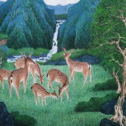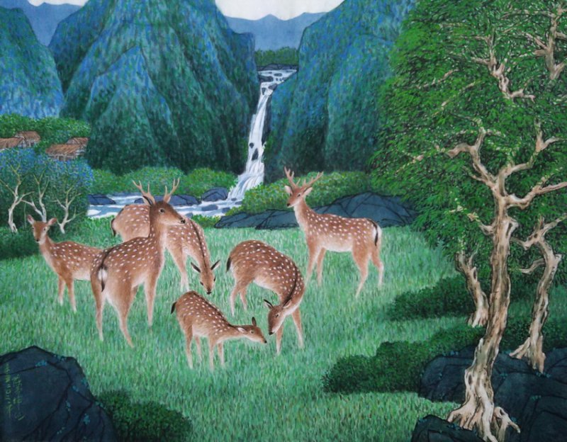 | 創作與人生息息相關,藝術的內涵在表現生命的意義。 | 從自我表現出顏色的喜悅。是彩墨畫的目的。 |