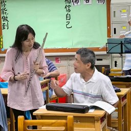 | 1.認識長笛的結構及發聲的基本原理 2.長笛吹口的吹奏方法 *舊生:複習基本練習、腹式呼吸、節奏練習和指法 | 教導學員了解長笛基本結構與發聲原理,有助於吹口吹奏的學習。在能夠將吹口發聲後,將練習長音與吐音(以同一口氣吹奏兩個音、三個音、四個音) |