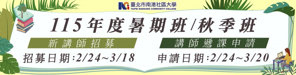 【115-1春季班現場報名】114/12/08起(成德校本部11:00開始受理;港工校區15:00開始受理) 【115-1春季班線上報名】數位課程:114/12/08早上11:00起;實體課程:114/12/15早上11:00起,全面開放課程線上報名。(南軟教學點課程不開放線上報名) 【線上報名開放至115/2/21晚上23:59截止】